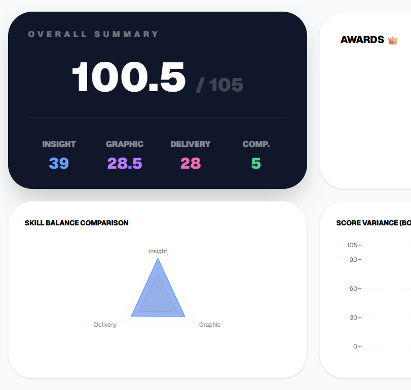 발표 직후 청중들이 실시간으로 각 항목에 대해 점수를 매기는 시스템입니다.